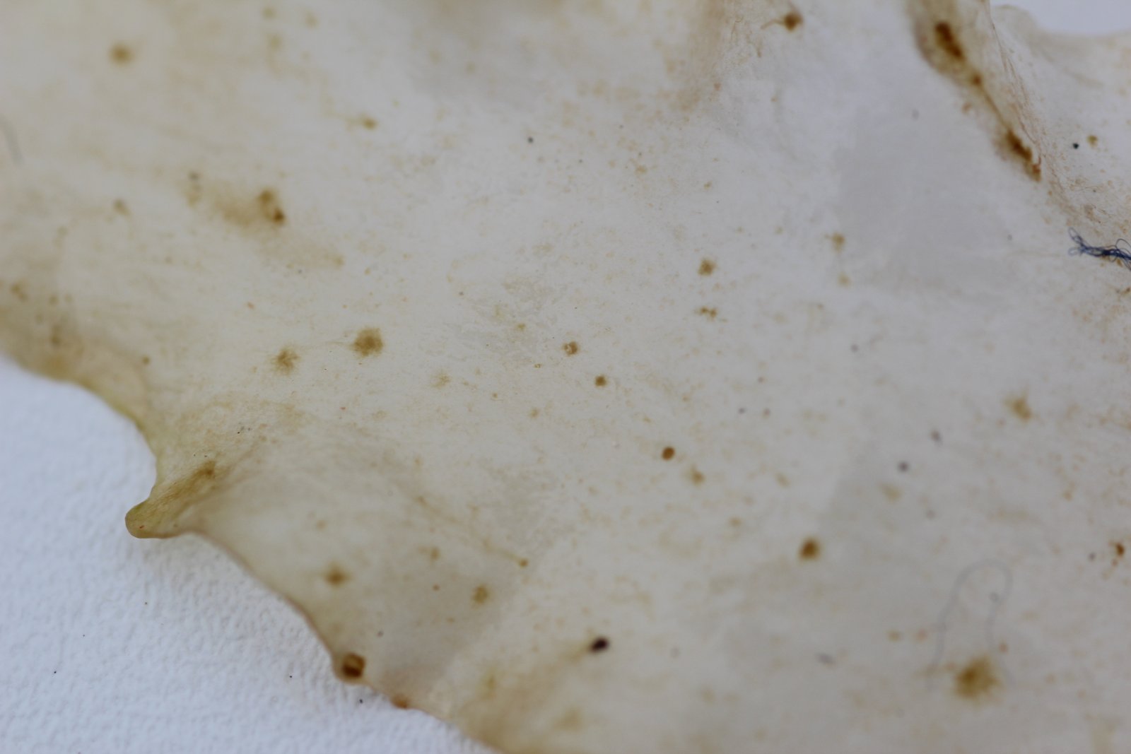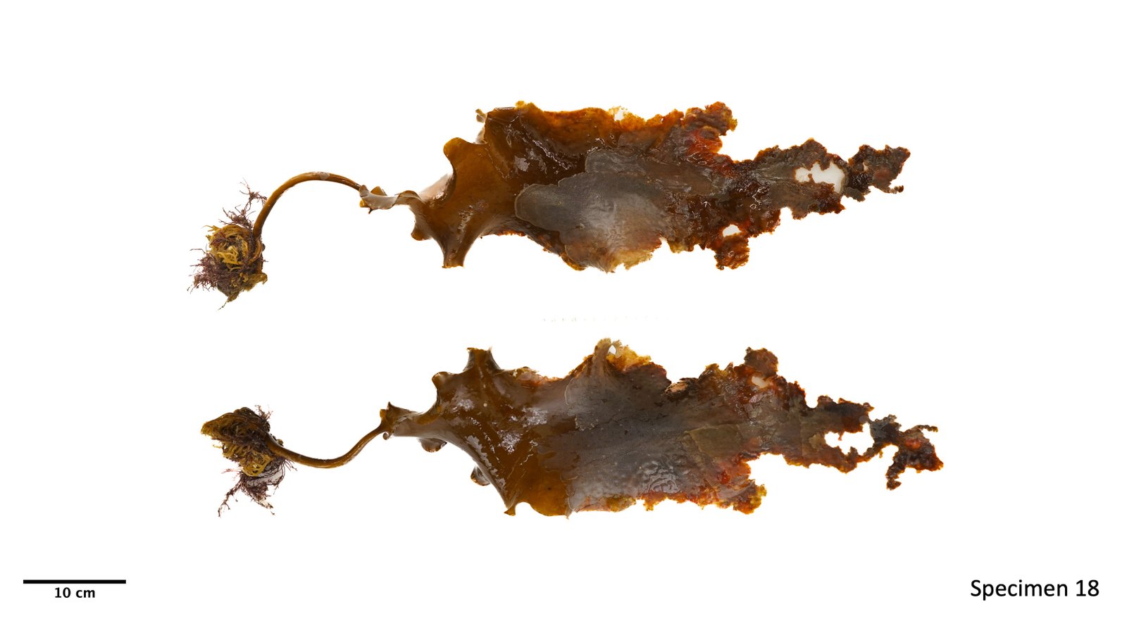 *Saccharina latissima sporophyte showing high levels of biofouling with bryozoans. Photo by Lydia Schmidt*